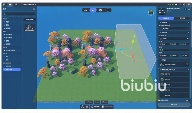 新增了“寻路阻挡组件”,可给动态物件添加自定义大小的阻挡区域,与上述功能可配合使用。模板化功能更新,在编辑器之中,通过“场景生成模板管理”工具,可创建各种自定义场景预设,就能在关卡里自动生成美观场景。奇匠学院也进行了系统化升级。