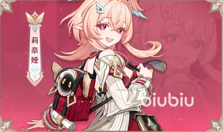 首先大家最关心的自然是全新的角色,本次的新角色是莉奈亚,红色瞳仁,粉色头发,甚至头上还有两个可爱的小翅膀,又是一名全新的萌妹,背上的包里似乎还有个“小伙伴”,是全新岩元素的弓箭辅助角色。