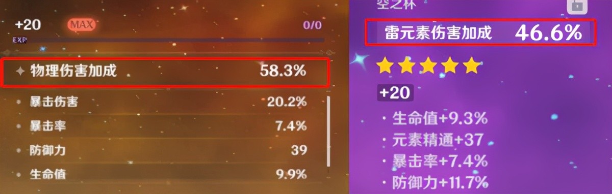 其次游戏里物理加成有关词条标值都偏大,比方说20级物理杯子加成到达58.3%(元素仅有46.6%),染血骑士两件套增物伤25%(元素仅有15%)!假如有90级风鹰剑,物理伤害再加41.3%!固然,没风鹰剑仅有黑剑也基本上可以打物理刻晴!