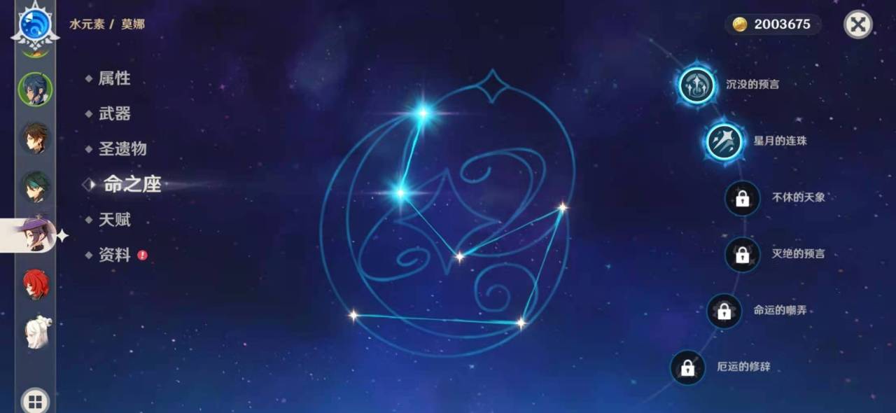 莫娜,五星水属性角色,也是比较早期的角色之一,小编最早是因为她独特的跑步状态而被吸引,可以直接潜下水。莫娜的定位比较适合主C,如果队伍中缺少主力输出就可以选择她,在加上一个班尼特打蒸发效果,元素战技有嘲讽效果和范围伤害,元素爆发有高额伤害加控制效果,在解除泡影后还能附加易伤,她唯一的缺点就是技能后摇较大,不能被敌人近身。