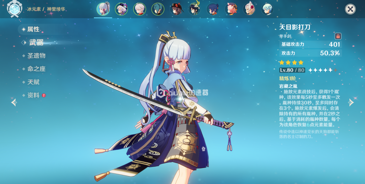 而这么一把需要费劲千辛万苦才能获得的武器,其数值和特效自然相当强力。天目影打刀的基础属性为攻击力数值提升和攻击力百分比提升,在八十级的时候可以提高401点的基础攻击力和百分之五十的整体攻击力,提升相当明显。在当前版本单手剑武器攻击力普遍较弱的情况下,天目影打刀的出现无疑于是弥补了这一缺点,对于很多攻击力乘区收益明显的角色而言,天目影打刀的强度和适用性绝对不逊色于任何五星武器。