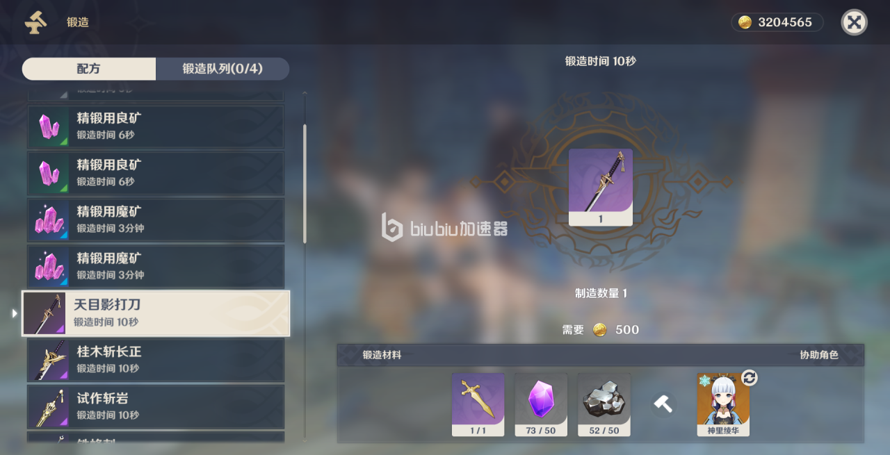 最后是制造方面,天目影打刀的制作需要一个单手剑胚以及五十个白铁块和紫晶块,制作成本较低。剑胚多的小伙伴可以考虑直接将其满破,效果更强。