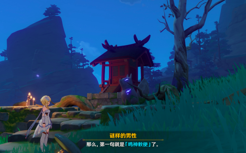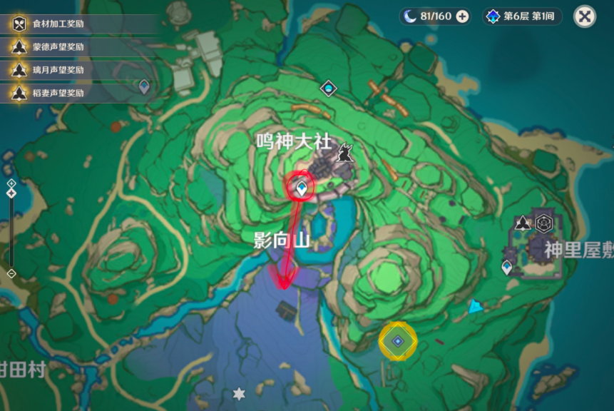 1. 首先可以直接传送到鸣神大社锚点,然后往影向山方向飞,飞到小黑屋的附近,这样就能快速的触发任务剧情。