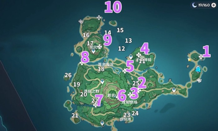 最后一个在整个鹤观地区的最西北方,也就是在知比山北面的沙滩上,位置比较好找,就不再赘述了。