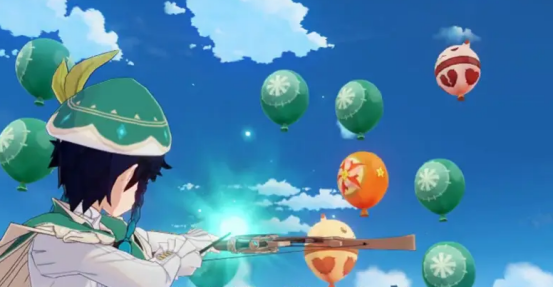 风物之歌是用来演奏蒙德的歌曲,里面的歌曲都是原神的原版,在弹奏的时候,必须要在光幕上进行调整,熟悉音游的人都知道,只要按照音乐的节拍,就可以很容易地通过。百发百中是三款游戏中最难的一种,由玩家操作人物在了望塔上发射气球,击中不同的气球会得到相应的积分,请各位朋友记住,在挑战前,首先要换成弓手,不用蓄能就能发射。