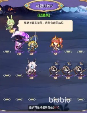 这一关开始我们在速度上就没有优势了,得先挨打。3速放在下路前排,4速放在3速的后面,7速放在中间前排,可以过关。