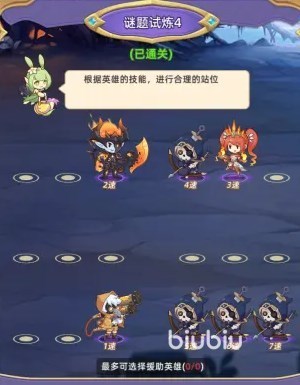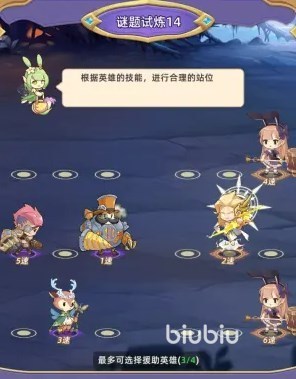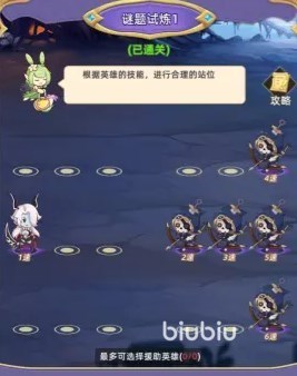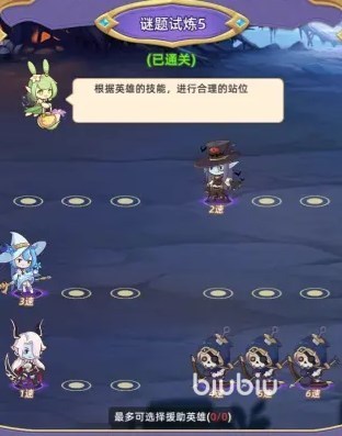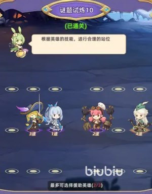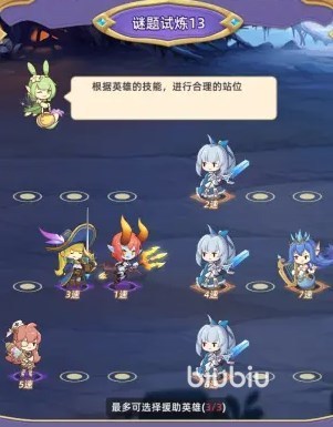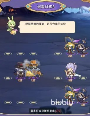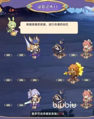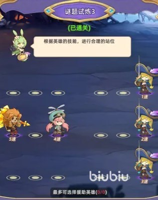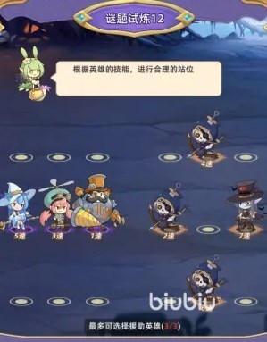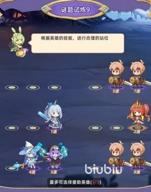 考验大家的站位,示例角色可用攻击一排的敌人,所以把它放在中间位置一次性消灭对面3个敌人即可。