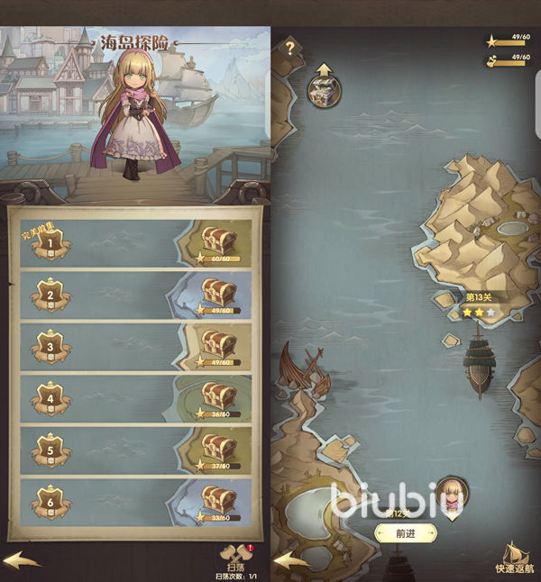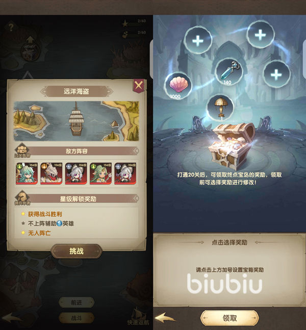 而在这个地方各位角色的战斗状况在对战结束不会保存下来,也就是说给每次进行对战都是以最好的状态去的。在这个海岛中想要获取宝藏,首先要做的就是将整个海域都通关才行,这样才能从中随意获取奖励。不过在这个机制中好友的佣兵不能上场。