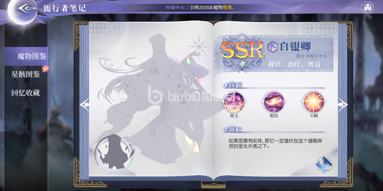 相比于维维,同为奶妈的白银卿更适合打boss,其大招禁之领域会治疗全体友军45%攻击力的血量,并增加10%伤害;绝技精神获取会大幅恢复我方单体目标血量,同时增加20%防御;天赋,狂信者会在开场赋予友军10%伤害加成。