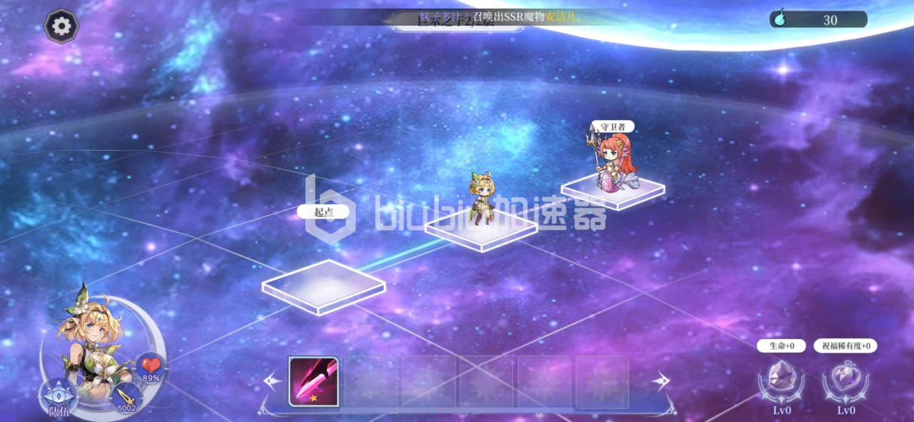 由于迷宫中玩家是不可以在一个个挑战中进行恢复的,在出发前,玩家们要合理选择角色尽量多带一些辅助,可以帮助在战场上保有续航能力,配一个骑士,外加两个输出手,再带两个辅助,这样的安排比较合理。选择好阵容后就可以进入迷宫探索了,迷宫的核心效果为祝福,获得后可以使场上的魔物获得一定的增强,一般有增加奥义伤害效果,生命增益效果,恢复生命等等。