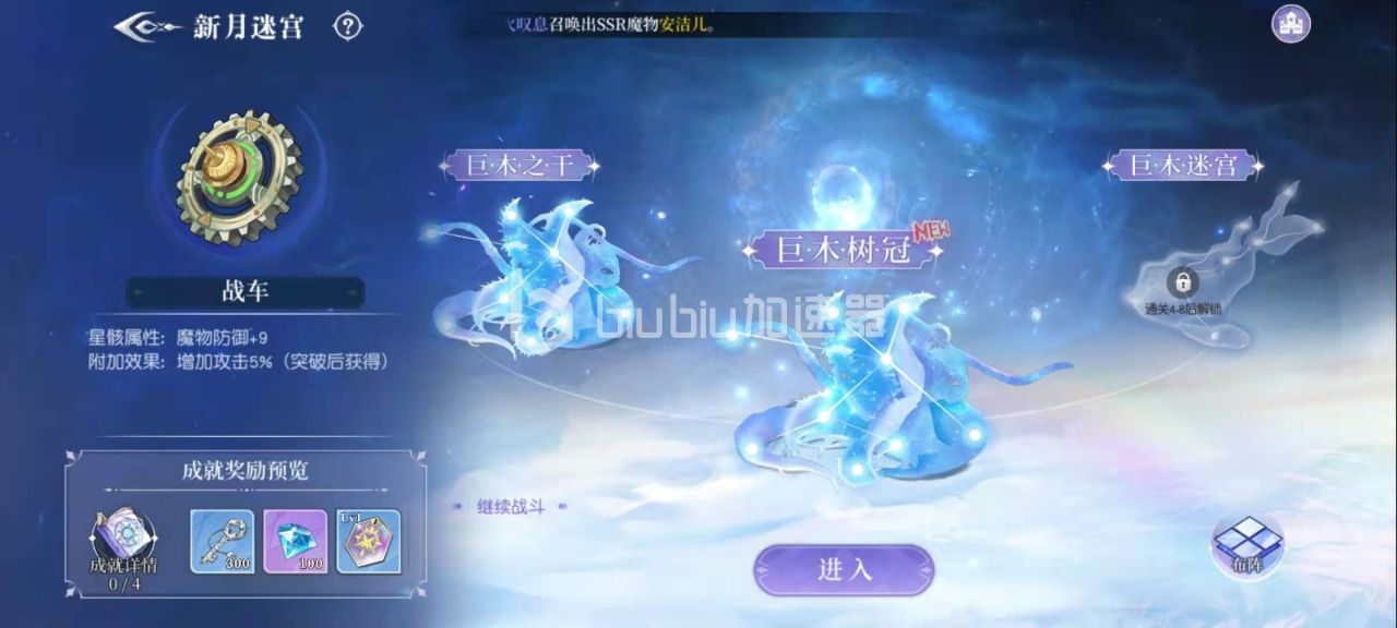 巨木迷宫是在玩家的主线剧情通关达到4-8之后才会解锁的玩法,巨木迷宫属于新月迷宫之一,所以在特点上也遵循着迷宫的规则,玩家在进入巨木迷宫的挑战之后,就不能在替换队伍了,每无法对队伍进行调整操作,之后在场外强化魔物也无法影响在迷宫中的队伍,所以建议是在阵容搭配上一定要注意。