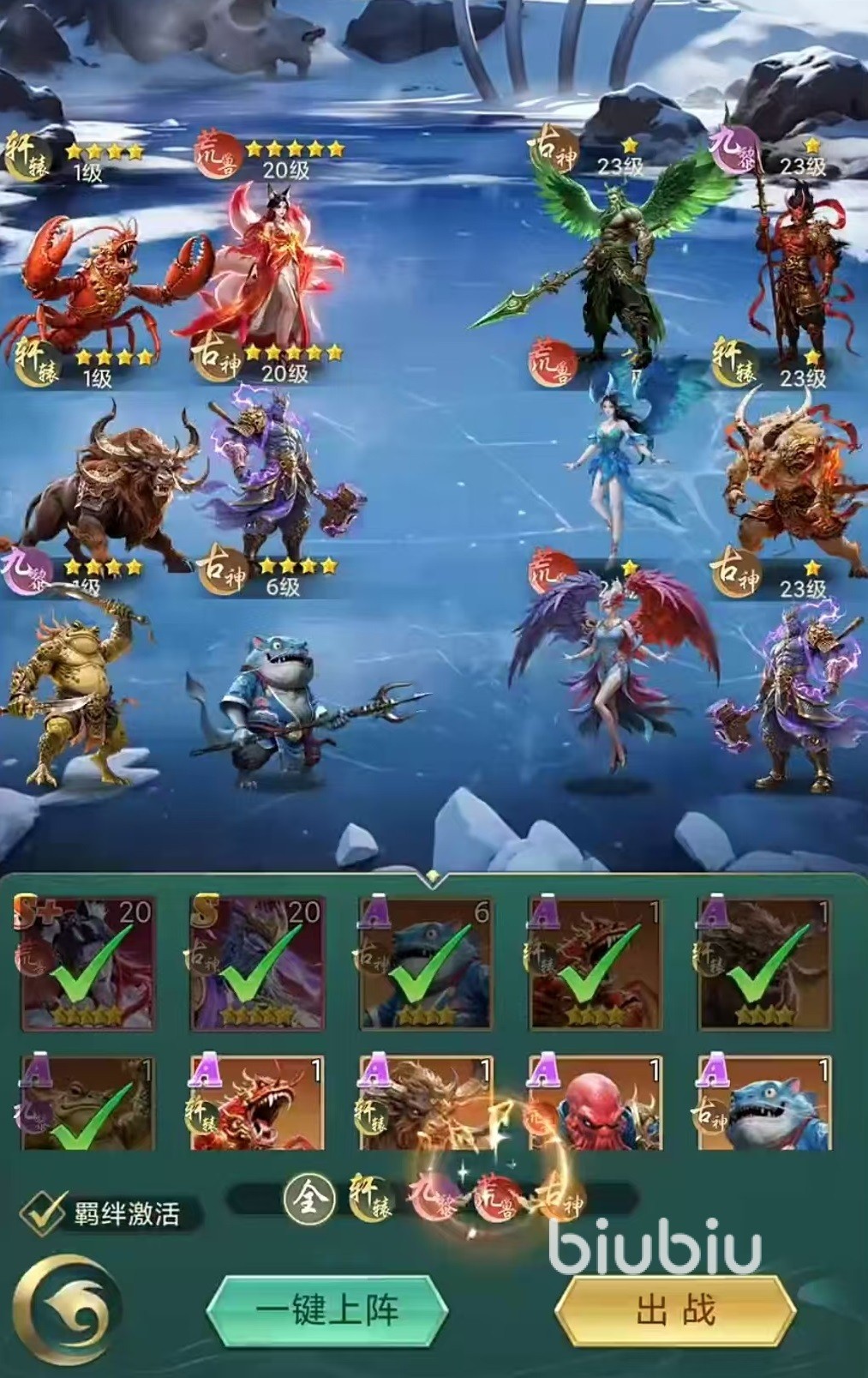 作为山海经类型的游戏,当然少不了各种各样的神兽,在这款游戏中,神兽全都靠抽取来获得,而且爆率非常高。山海经中那些大家所熟悉的有名有姓的异兽和神仙,在这里都可以收集起来。例如炎帝、应龙、玄武、麒麟等,都是可以抽到并且陪伴玩家战斗的神兽。游戏承诺做到10连必定出红,拥有超高倍率,不锁卡。有了神兽之后就可以进行接下来的策略阵容搭配,游戏中拥有多种阵容,可以随时搭配选择,在战斗方面也比较考验策略性,并不是一味的强调战力高,还拥有属性克制,技能搭配等关键的方面。玩家可以凭借自身的实力战胜敌人,也可以通过阵容搭配秒掉比自己实力更强的玩家。