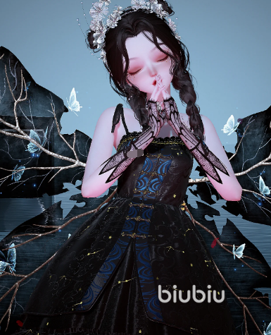 这是一款五星套装,由于套装属于华丽属性,为了凸显出华丽的风格套装以黑色纱裙为主,其中添加了很多独特的元素,比如蕾丝、刺绣等等,这些都是当下比较流行的元素,除了这些之外还有各种宝石以及星星钻石作为点缀,就像是掉入银河系一样,华丽璀璨。