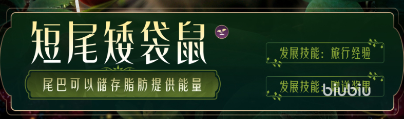 短尾矮袋鼠也是我们发展领地的好帮手,它十分善于交际,会给其他野兽分享旅行经验,同时它也是经销商松鼠的好朋友,只要有短尾矮袋鼠在,松鼠就会延长停留时间给物资进行打折,甚至还会给我们的领地直接赠送浆果和蜂蜜等资源。