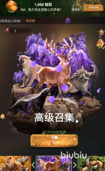玩家在游戏内成为统领野兽群族的领主,运筹帷幄打造充满热血与激情的野兽王国。玩法集资源模拟经营与培养野兽部队为一体,玩家作为部落的领主,需要通过各种手段收集壮大群落的动物数目以及种类,比如野外作战、抽卡以及活动轮盘等。