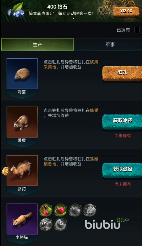 新手建立成动物栖息地之后,完成引导教程即可开放异兽召集功能,召集平常在地图上不出现的稀有动物,比如高人气的狮子、猎豹与棕熊。