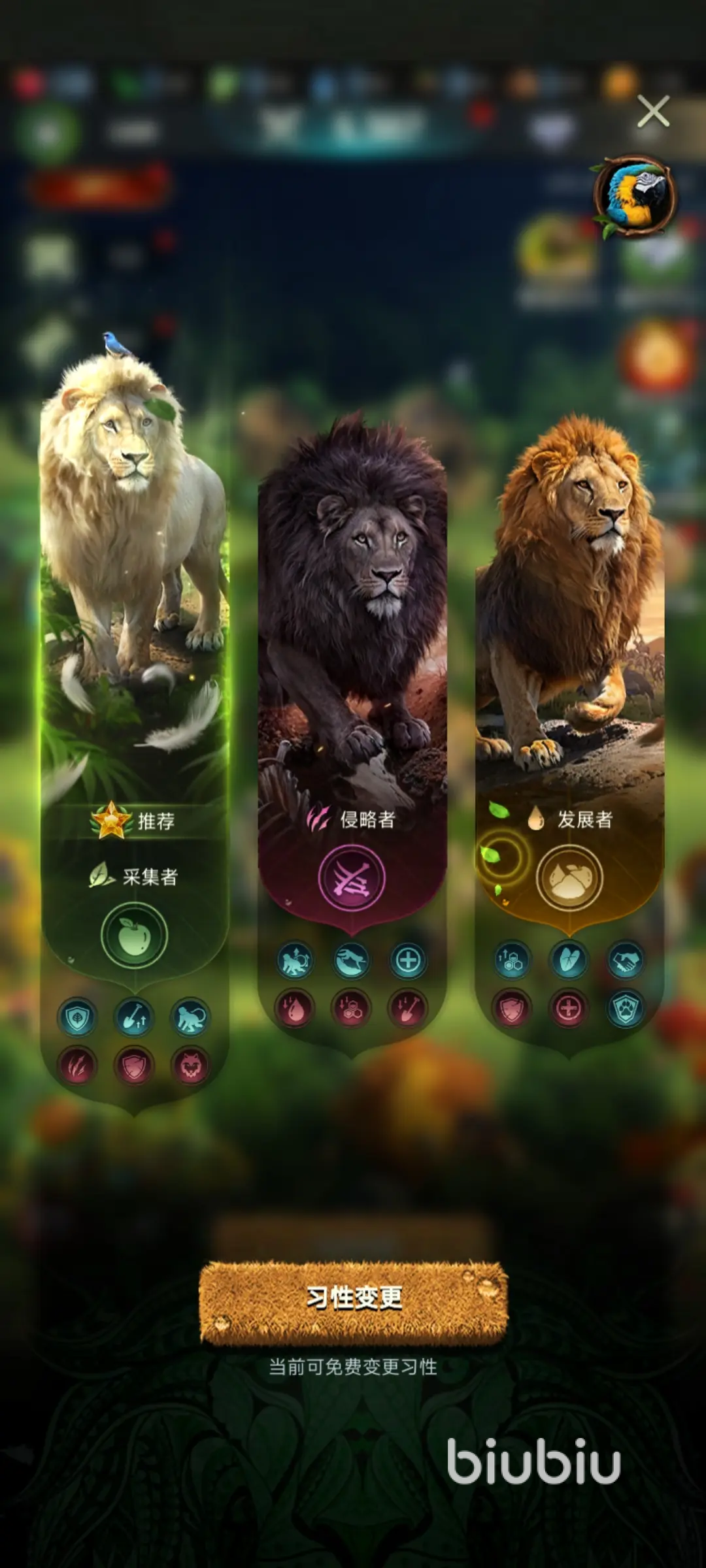 另一点需要着重注意的就是习性的选择方面,这对于中后期的发展都是有关键影响的,所以选择的时候一定要慎重。现在可以选择的习性有三种,可以选采集者,掠夺者,或者是发展者。其中采集者可以在前期的时候就有一个采集的营地,能够大幅提高我们的效率,还可以通过加工获得大量的资源,对于前期开荒好处很多。掠夺者能够得到攻击力还有防御力的加成效果,这就让大家在前期战斗的时候占据优势,死亡的野兽甚至可以转化成受伤的状态,治疗之后重回战场还会有更高的战力。