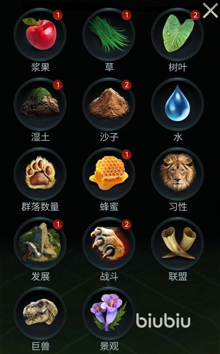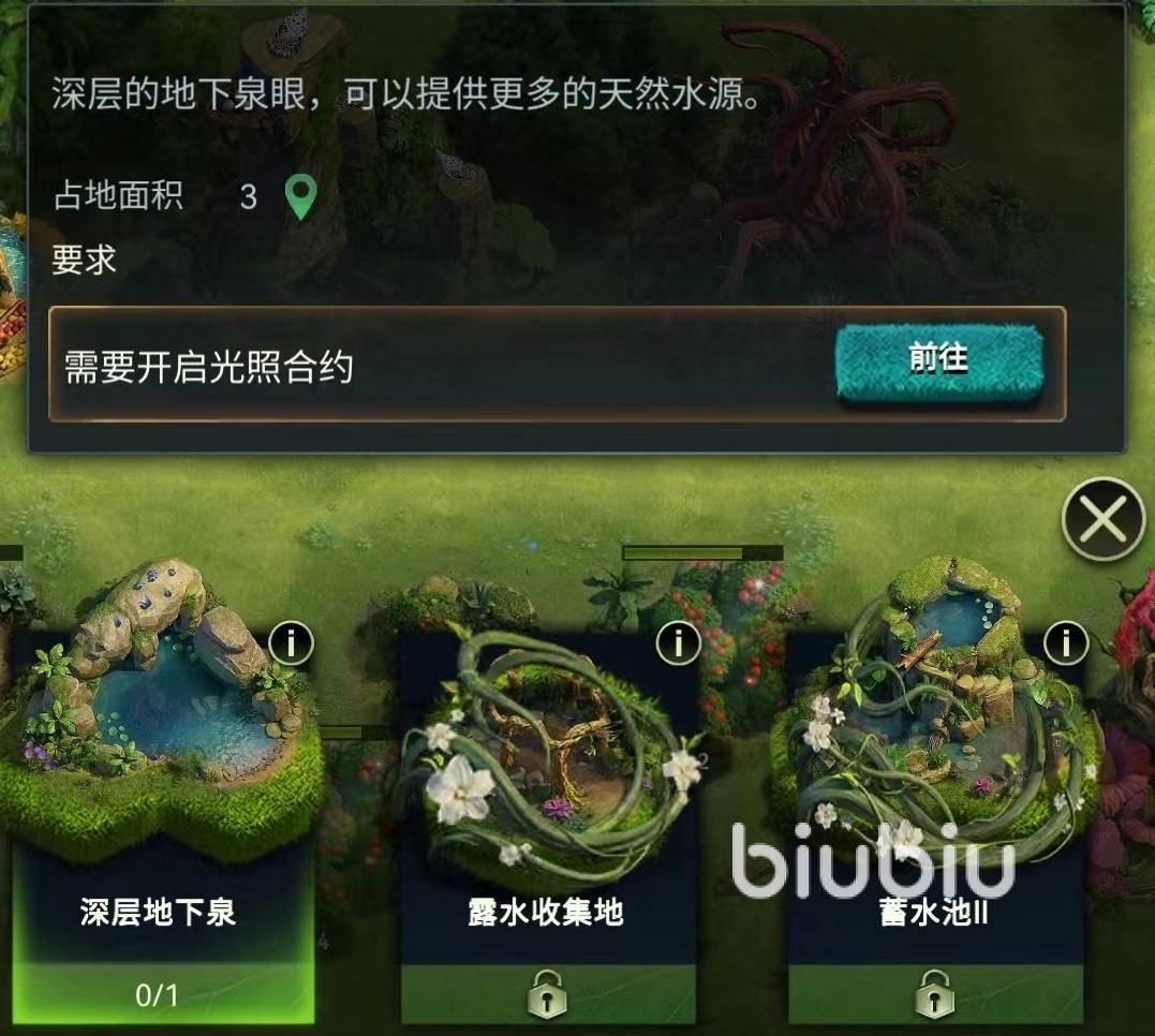 同样的还有湿土、沙子与水,这里水比较特殊,它的生产建筑有多种,包括深层地下泉,露水收集地,蓄水池等。深层地下泉可以提供更多的天然水源,露水收集地则是收集露水供应领地发展,使用采水猴就可以将露水收集起来,这些水资源都在除蓄水池中存放。其他类型则是和战斗以及发展相关。例如可以建造各种习性发展营地,包括掠夺者特殊集结地、采集者营地、发展者营地等。不同类型习性将产生不一样的帮助,例如掠夺者营地是按照掠夺者习性建造,获得的战利品会给予野兽激励。