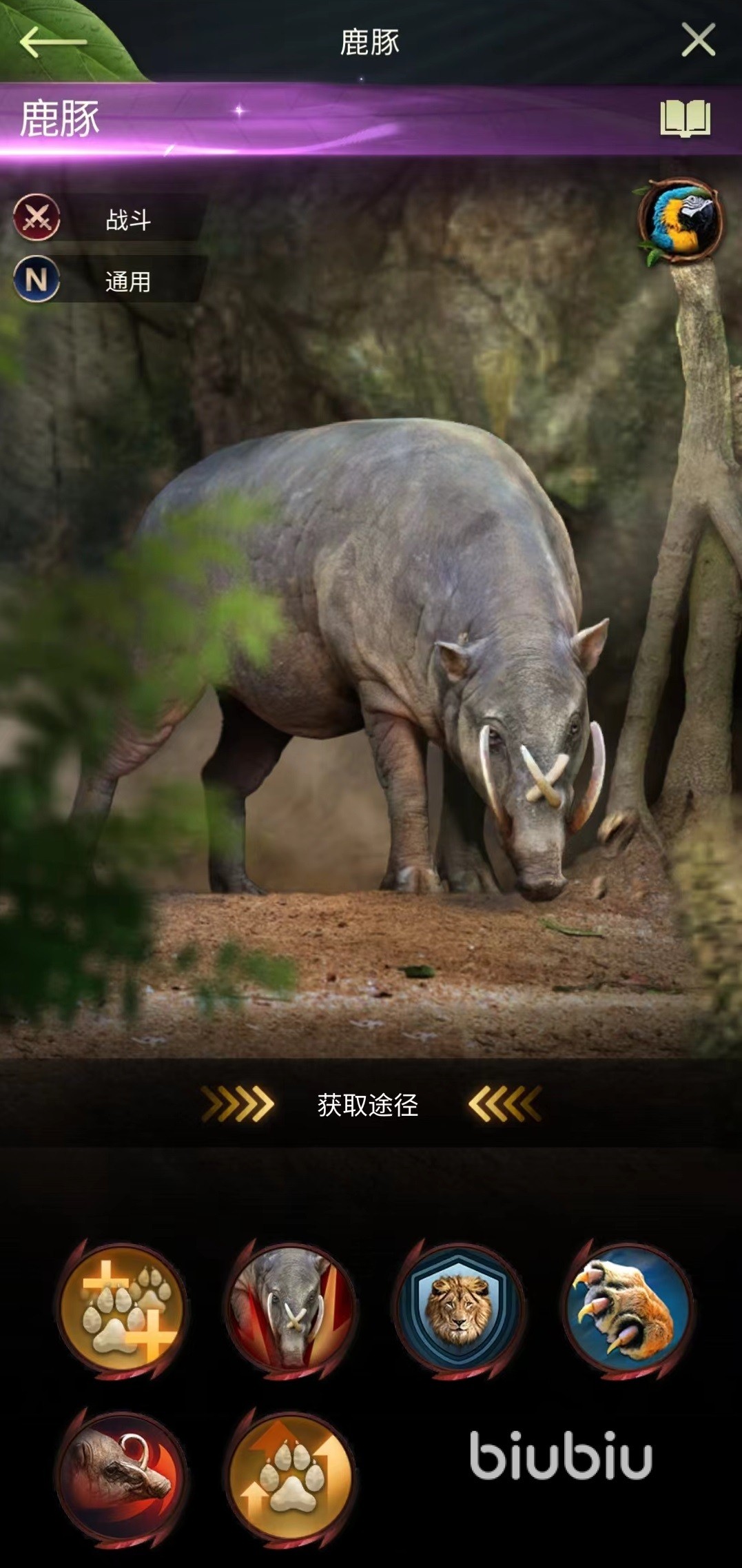 在游戏中鹿豚被设计成了一种可以进行战斗的通用型异兽,这使其能适用更多场合,因为自身属于紫色品质,所以比起橙色异兽在核心技能统治力方面就低了一些。即使达到满级状态,也只能够提升10850的出征上限,这就限制了在很多战斗中的发挥,只能用于前期过度使用。当然作为战斗型异兽,它也具有一些可以打出伤害的技能,分别是冲锋和弱点打击。