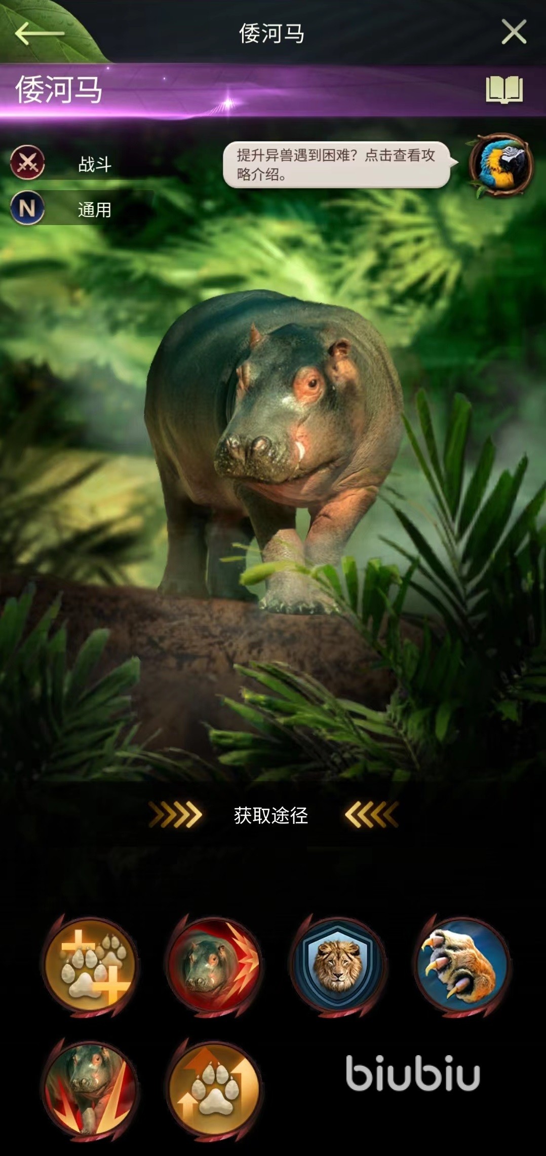 2024年06月21日 11:02 来源:可汗远佐助在野兽领主新世界中,异兽的数量非常多,而且有不同分类,根据现实世界中的习性分为食草,食肉,杂食等各种类型,还有一些属于通用类型,在搭配时候非常方便,今天小编来讲一下野兽领主新世界倭河马好用吗。倭河马就是属于通用类型的异兽,可以率领任何野兽,技能效果都能发挥出来。