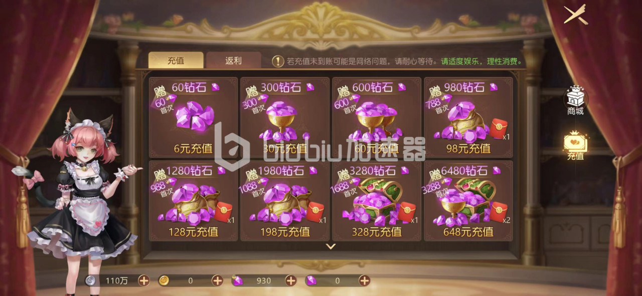 我们首先在主界面找到商城,点击进入充值界面,再点击返利就可以查看白龙获取的对应价格,白龙目前的返利奖励在5w个钻石,正常10个钻石是1个软妹币,但是充值会有额外赠送钻石,因此实际价格会偏低一些,充值以后钻石还是可以用来购买其他东西的,这个白龙坐骑只是累计充值的奖励,不会扣除钻石,玩家可以根据自己情况酌情考虑是否充值获取。