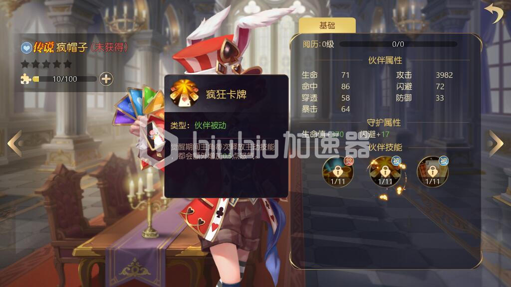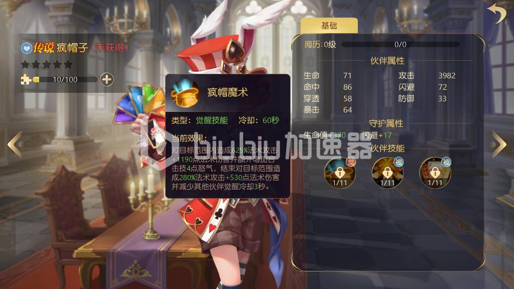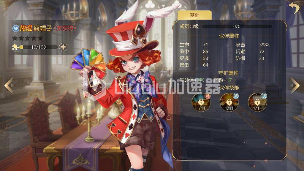 总之,疯帽子作为一个传说级别的伙伴,自身的输出能力是非常优秀的。目前玩家们可以通过结缘来获取到该角色,也可以在角色商城当中进行疯帽子碎片购买。