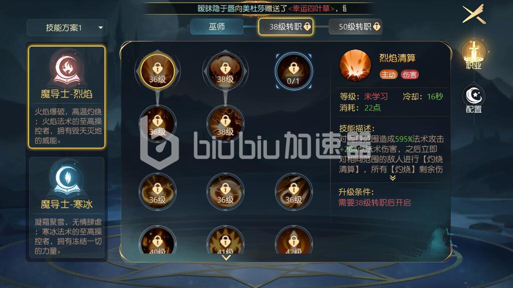 小编建议大家在得到技能点之后,将大部分技能点都分配到烈焰清算上,这样就可以直线提升火法的灼烧能力。在其他技能的培养上,玩家们可以将重心转移到能良新星技能,该技能的范围伤害非常优秀。