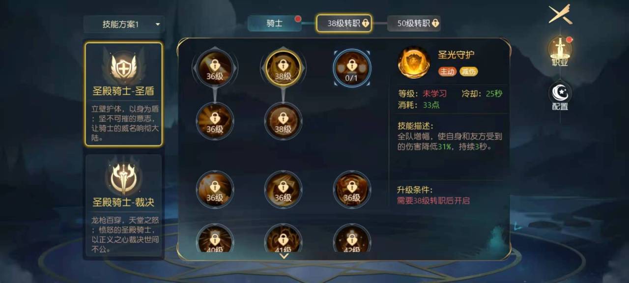 骑士的两个转职方向,第一个是圣殿骑士-圣盾,第二个是圣殿骑士-裁决,这两个方向中,圣盾骑士更加适合防御,在副本中的地位很重要。裁决骑士的输出不错,在副本和竞技场中都能有不错的发挥。