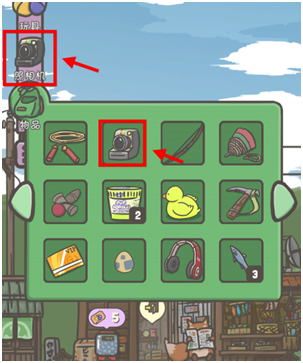 买完照相机后,在背包中和菜单栏都会出现一个照机的图标。