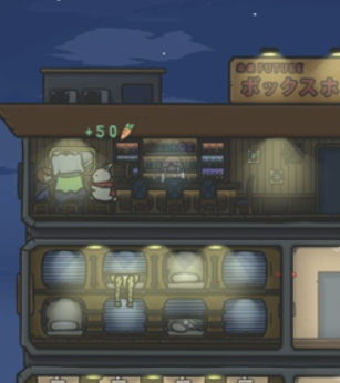 在月兔冒险中,兔斯基会去大都市的酒吧喝酒,这个时候我们可以看见酒吧的左侧有一只大象和一只猴子在打牌,我们点击这个大象进行对话。