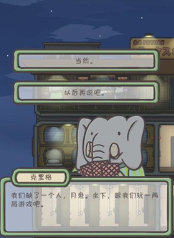 然后大象会说他们缺了一个人,邀请我们一起打牌,我们点击“当然”就可以和他们一起打牌了。