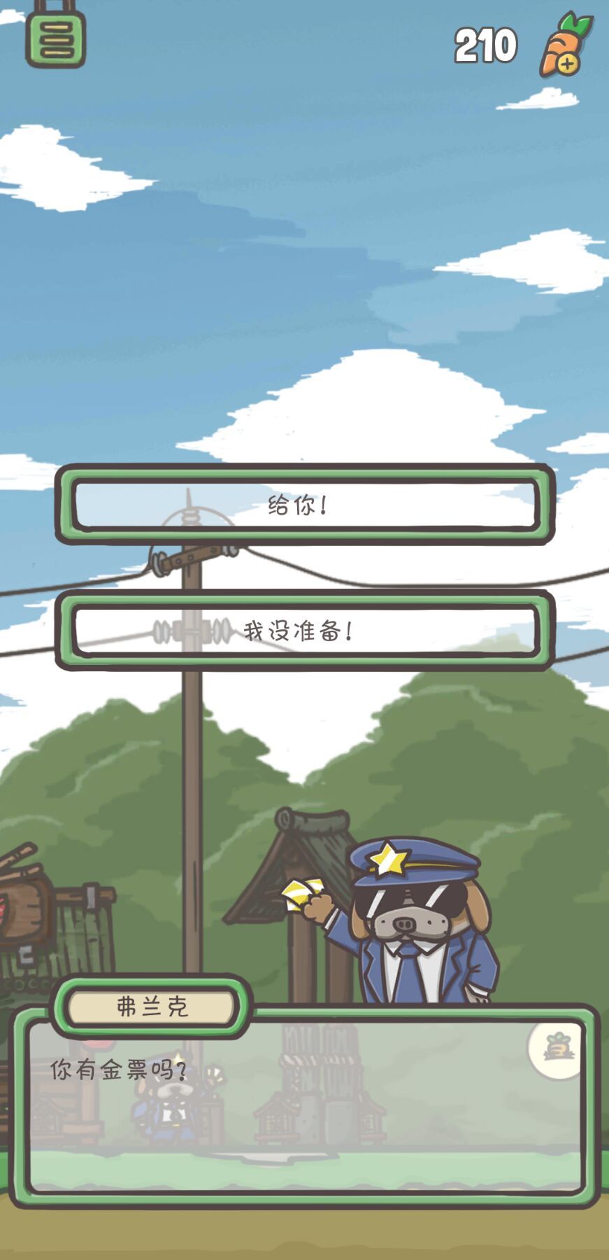 车站解锁了,这个时候就可以买票进入大都市了。进入火车站之后,就可以看到售票窗口在出售金票,想要坐火车去城市,必须要购买大都市的金票,价格是1000根胡萝卜。