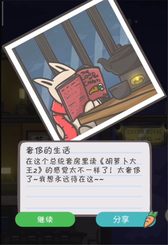 胶囊旅馆和豪华酒店入住是互斥的,入住后接下来三天就一直要住在这里了,所以想要体验哪种生活,玩家在家乡时就应该选择好携带的胡萝卜数量。