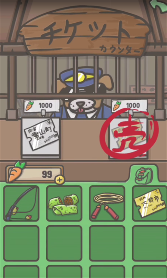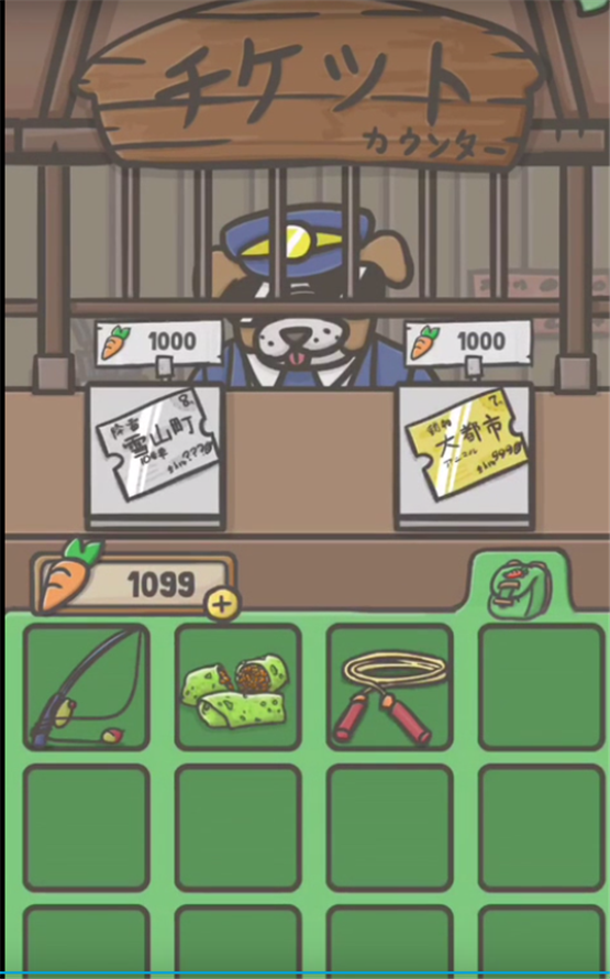 车站开放后月兔就可以进入车站购买车票,车票分为金票和银票,金票前往远方的大都市需要花费1000根胡萝卜。