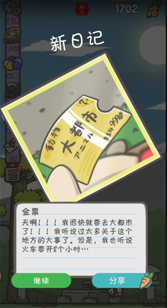 选择使用车票开启旅程就可以开启相应的旅程。要注意的是车票一经售出不能退换1000个胡萝卜价格不菲,所以要提前想好是去雪山探险还是去大都市游玩。