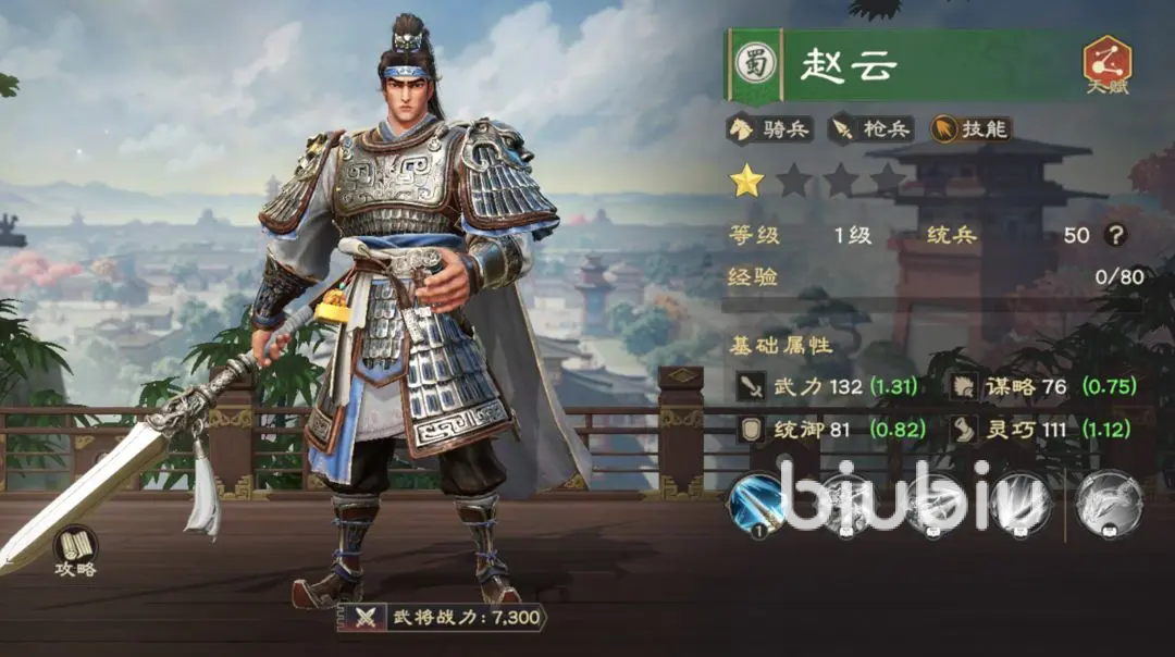 赵云是一名技能型武将,善于统率骑兵,枪兵进行战斗,武力成长达到1.31,在众多武力核心当中,也是中等偏上的水平,统御成长稍微低一些,只要不是持久作战,避免被集火,他就能有相当不错的发挥效果。怒气技如果是在觉醒后,能额外提高技能技术,也是目前主动技当中系数最高的武将之一了,技能输出系数非常高,且拥有多段击飞效果,不仅能打伤害,控制能力也非常出色。