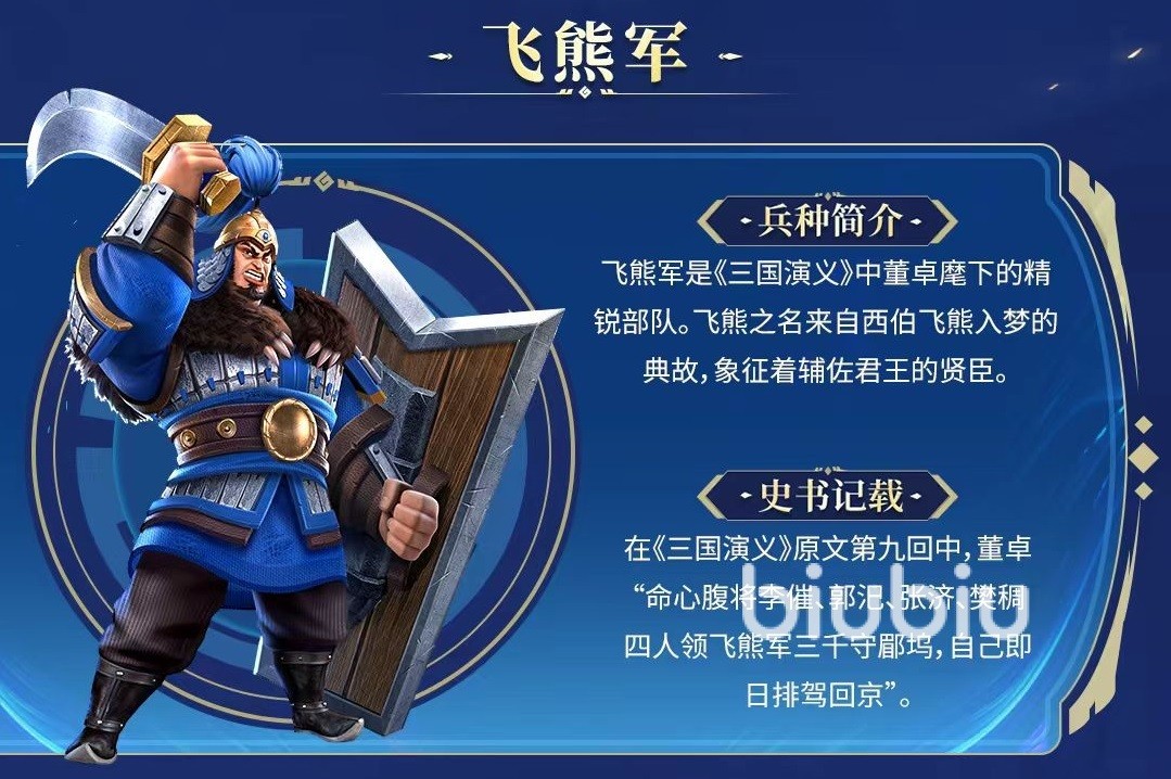 先来看一下游戏中属于盾兵的特殊兵种,分别是飞熊军、虎贲卫和陷阵营。飞熊军在三国演义中是董卓麾下的精锐部队,虎贲卫是曹魏的精锐部队。陷阵营是吕布麾下的部队之一,由大将高顺统领,同时也是一只铠甲斗具精良,承担攻击任务的先锋部队。在战斗中,队伍的输出与当前兵力挂钩,生存能力出色的兵种,拥有更强的持续作战能力。盾兵有等级、装备和科技等加持,生存能力得到进一步提升,所以建立一支盾兵队伍非常重要。