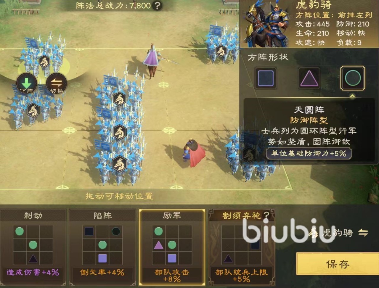 第5个是反击型阵法冲轭阵,能提升队伍的反击率和反击伤害,想要走反击队,没有其他选择,直接选这一个就是了。现在比较流行的关羽反击枪流派,搭配上这一阵法非常强势,反击枪体系在赛季中后期有着更大的发挥余地。最后一个是生存类型天覆阵,有几率治疗己方部队,一般搭配续航武将使用,例如刘备和许褚等,无论副将是哪一个武将,都可以直接上天覆阵提高生存。