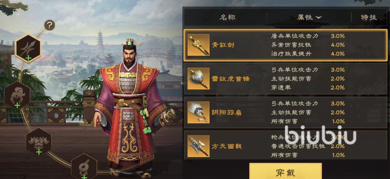 在主城等级达到16级之后开放铁匠铺系统,从此武将装备开始大量出现。装备要基于武将定位进行选择,例如普攻流的武将可以选择加攻击力和伤害提升的装备等。在铁匠铺每天能采取委托任务,获取锻造材料,在商店中也能购买到锻造材料,然后在铁匠铺直接锻造装备就可以了。