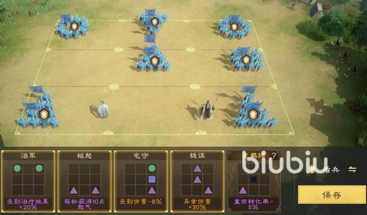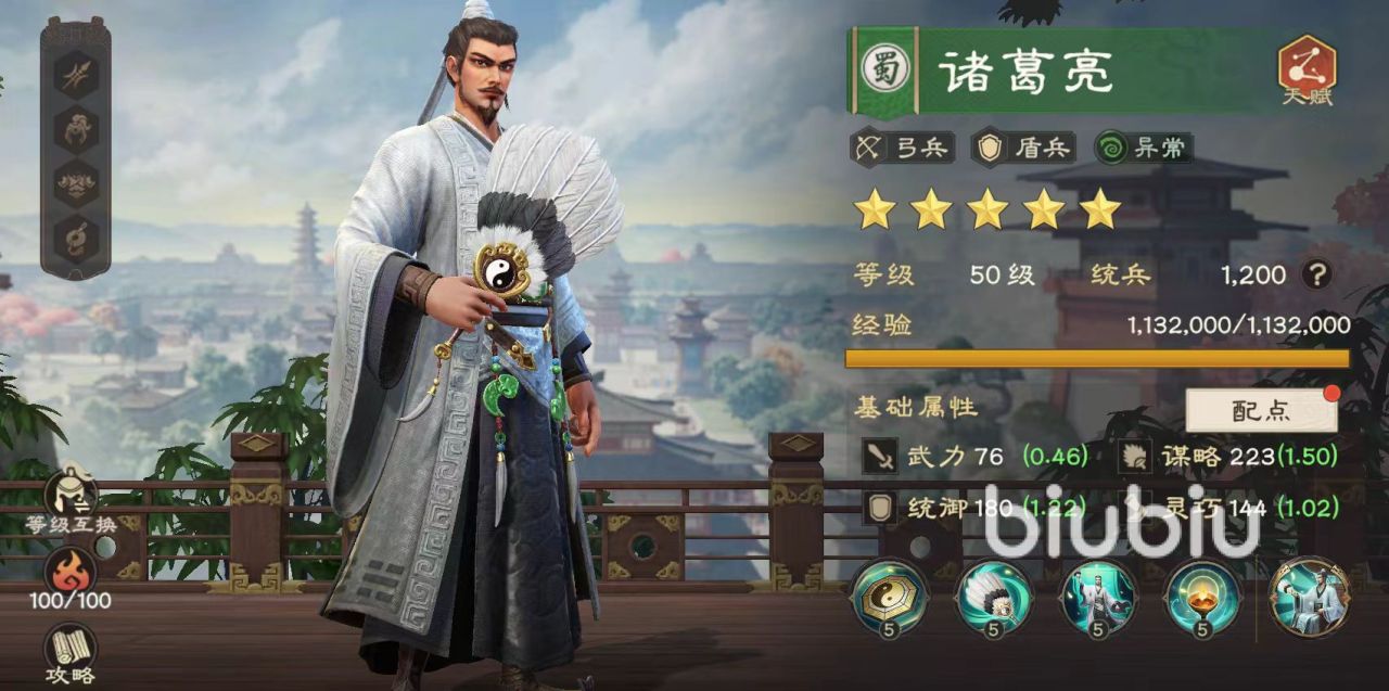 在属性方面,诸葛亮的谋略成长为1.5,这样的高成长可以助力打出出色的谋略伤害,也正是因为谋略高的缘故,所以诸葛亮触发的异常伤害、恢复效果以及添加的护盾,都比其他的武将要更出色一些。再加上自身的统御成长在武将中也是属于中上水准,所以非常适合作为阵容核心,去构建慢速异常流队伍。在兵种选择方面,诸葛亮擅长弓兵和盾兵,在开荒时可以用弓兵去打伤害,后期如果想要打持久战,优先考虑盾兵。因为盾兵的承伤能力更强,持续作战能力更优秀,只有盾兵才能发挥出异常队的真正优势。