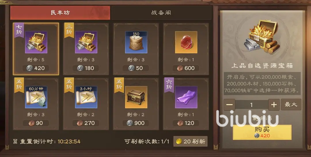 资源产出:将建筑,科技升级,要使用粮食,石料,木材,铁矿之类的基础材料,这些资源可通过耕田,伐木场等获取,资源建筑等级提高,每小时的产能收益就越高。这里是允许掠夺其他玩家资源的,府仓就是决定对资源保护的量,只有超过保护量才会被掠夺,也可以攻击其他玩家掠夺资源。