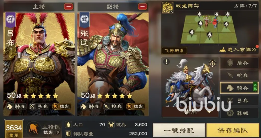 技能骑体系中,吕布的高武力成长与技能暴击特性,使得他在和张辽搭配时能够爆发出极为恐怖的伤害。双龙阵下的吕布暴击骑,不仅能在开战初期打出高额伤害,还能凭借续航效果在中后期继续压制敌方兵力。