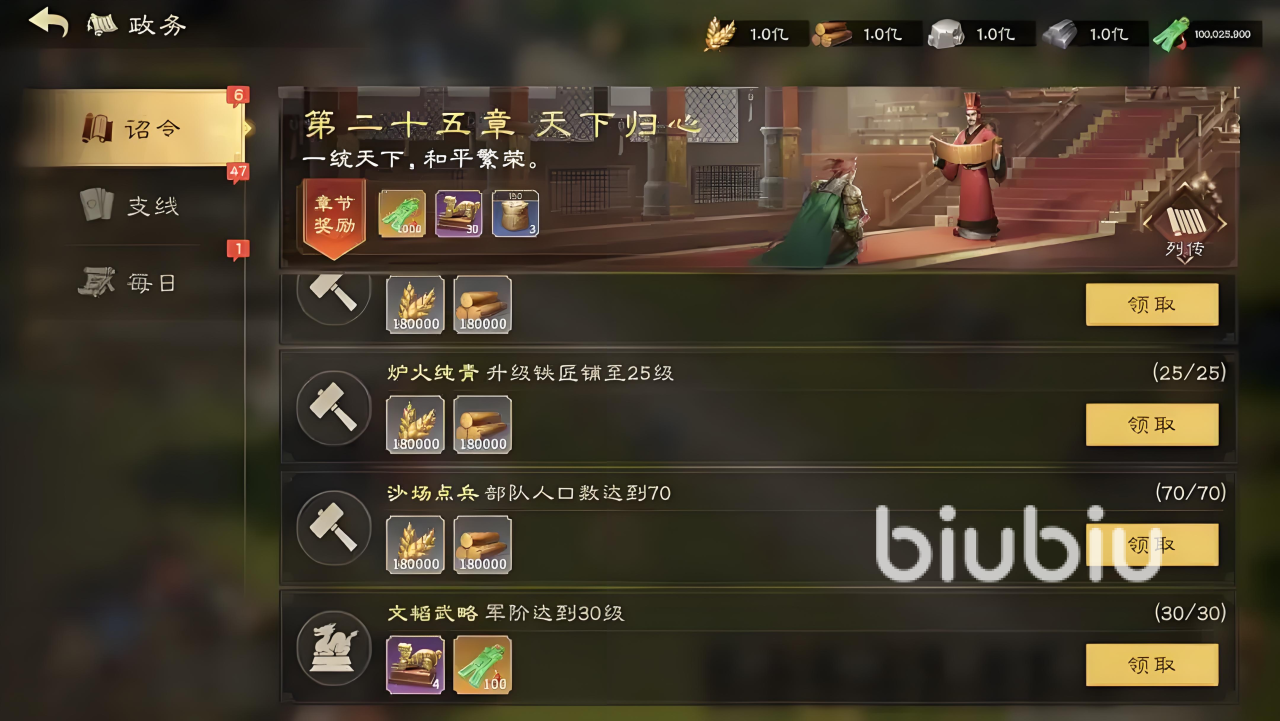 游戏初期,"诏令任务"(主线任务)是你最好的向导。它不仅指引你了解游戏功能,完成任务获得的丰厚资源(如金币、英豪令)和加速道具,这些道具 对前期发展都很重要。另外军阶也是关键,通过挑战蛮族提升军阶,是开荒的核心玩法之一。军阶等级直接决定你能解锁哪些实用特权,对发展速度影响很大。