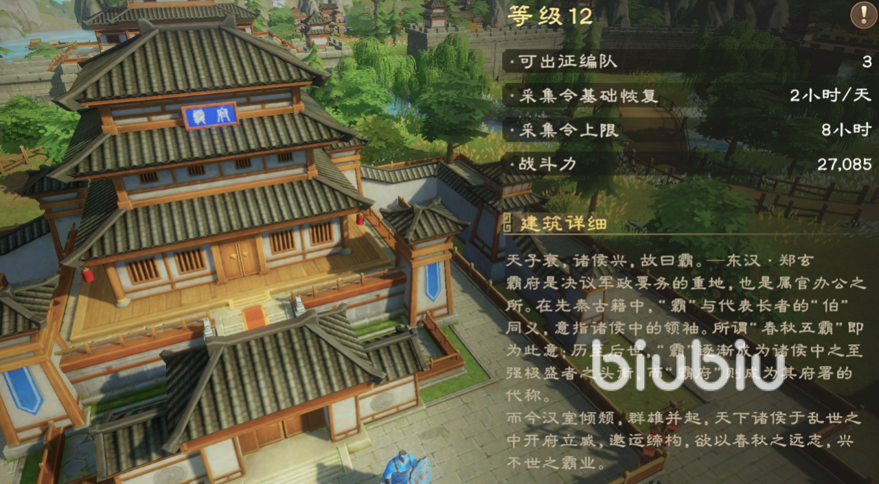 《偃武》的建筑系统是资源管理和战力提升的基石。霸府是所有建筑的主要枢纽,它的级数就相当于其他建筑的最高等级和队伍总数,并影响采集令的恢复和存储上限。游戏内建筑主要分为资源类、军事类和功能类三大体系,大家需要根据自身发展阶段和战略目标来合理规划它们的升级顺序和布局。