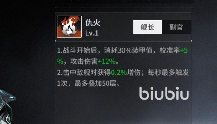 维特鲁还有一个特性就是在攻击命中敌人舰船的时候,可以获得最高0.5%的增伤,别看着不多,但可以叠加,每秒最多触发一次,最多能叠50层,也就是最高25%的永久增伤,可以说是非常显著的输出收益了。