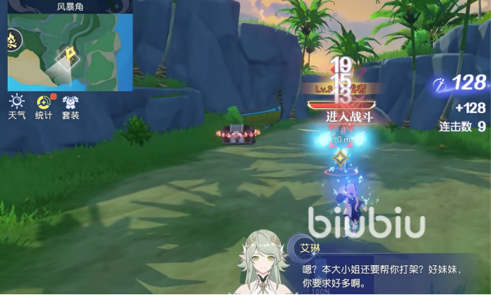 后面出现的盗宝团怪物的等级越来越高,我们依然要远程输出。靠近的话就马上拉开距离,如果血量拉低的话就可以放一下治疗之风,为自己加血。解决了所有小怪之后,后面就会出现了黑宝团大boss的剧情,这时她前面会出现一个极品宝箱。