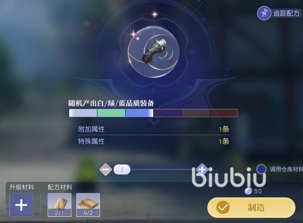 双击进去之后就可以进入缝纫页面了,从左下角我们就可以看到配方材料。例如我们要制作的粗麻胸甲,就需要用到两个皮革以及两个麻布。接着可以选择制造的数量,制造一个的话需要花费50银币。然后点击之后静等一段时间,就可以随机生产出一件不同品质的粗麻胸甲了,当然你想要制作其他套装的装备的话,同样要用到这些材料。
