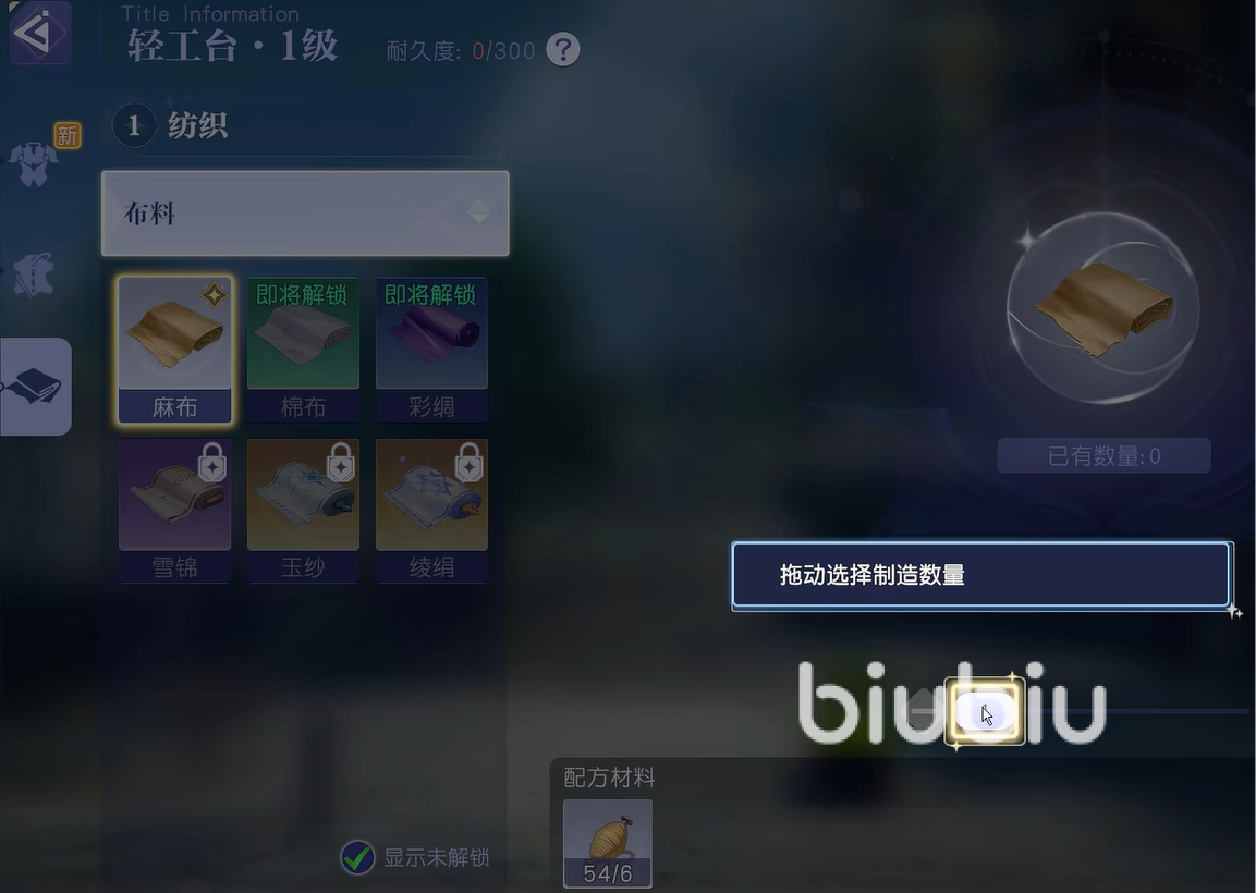 至于轻工台的话,可以在新手小镇中直接找到。点击对话后就可以选择制作选项。之后我们可以制作麻布,因为要缝纫的话,肯定要准备各种布料。如果不会做的话可以在商店中购买图纸,就可以获得相应装备的缝纫图纸了。
