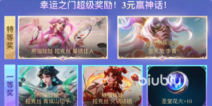 在之后是第三个活动,这个活动是一个抽奖性质的活动这个活动的话也是每一个版本都有的活动,这个活动中首次有一个折扣奖励,几块钱就可以抽一次皮肤这个皮肤必定会给到一款自己没有的皮肤。