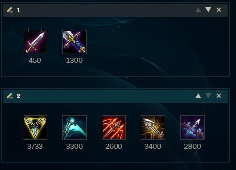 出装方面首推的第一件就是破败,因为其合成比较平滑,小件在对线期非常好用,有攻速加成也有吸血,减小对方的小技能耗血压力,保证续航,主动技能配合被动的减速提高击杀和风筝能力,非常合适艾希,第二件可以出出飓风,然后补无尽轻语复活甲,如果对面刺客突进很多,第二件替换成幻影之舞也不错。